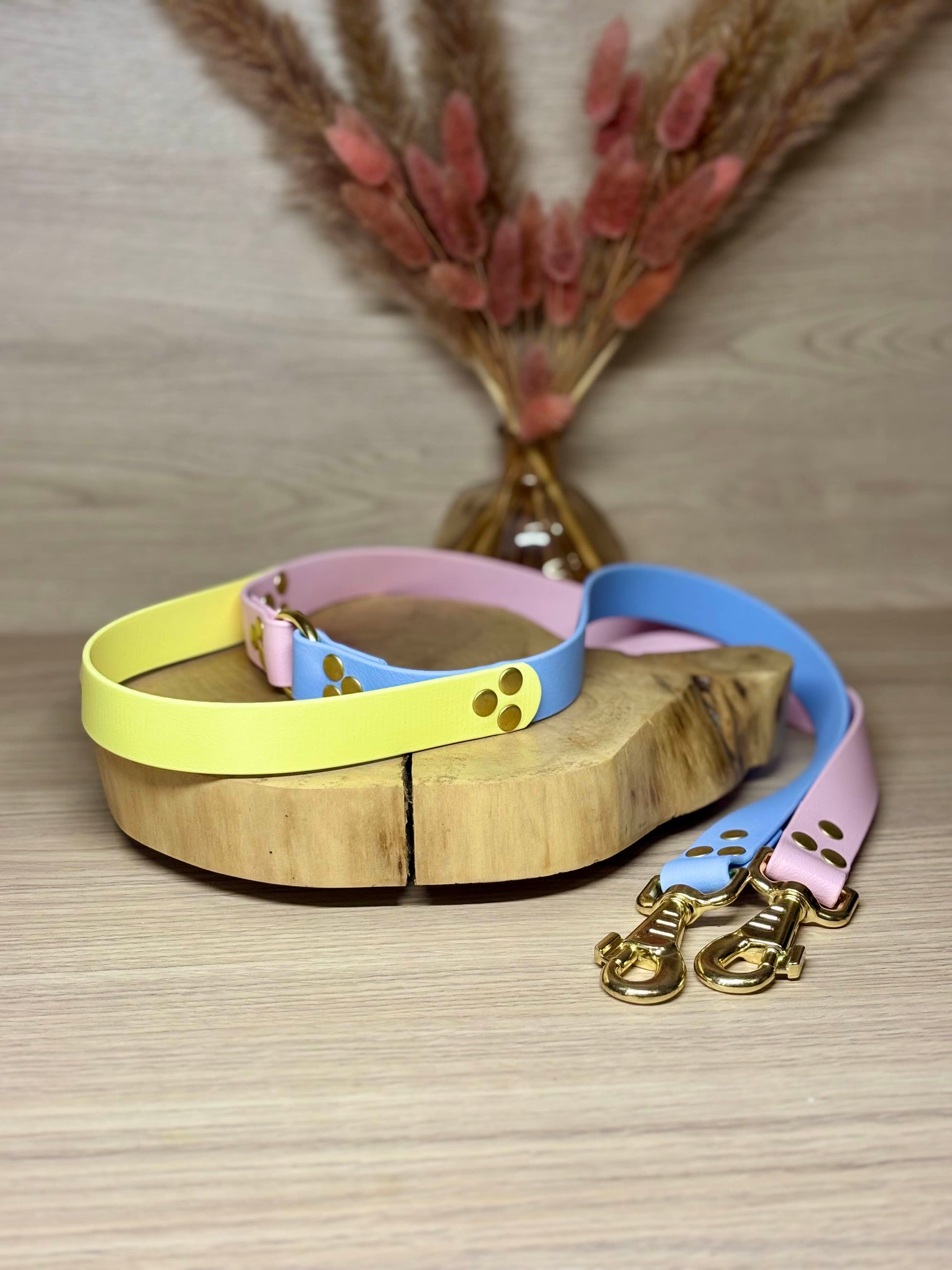 Longueur : 55 à 65 cm ( Indiquez le gabarit de vos loulous en commentaire lors de votre commande afin de créer la laisse double parfaitement adaptée.